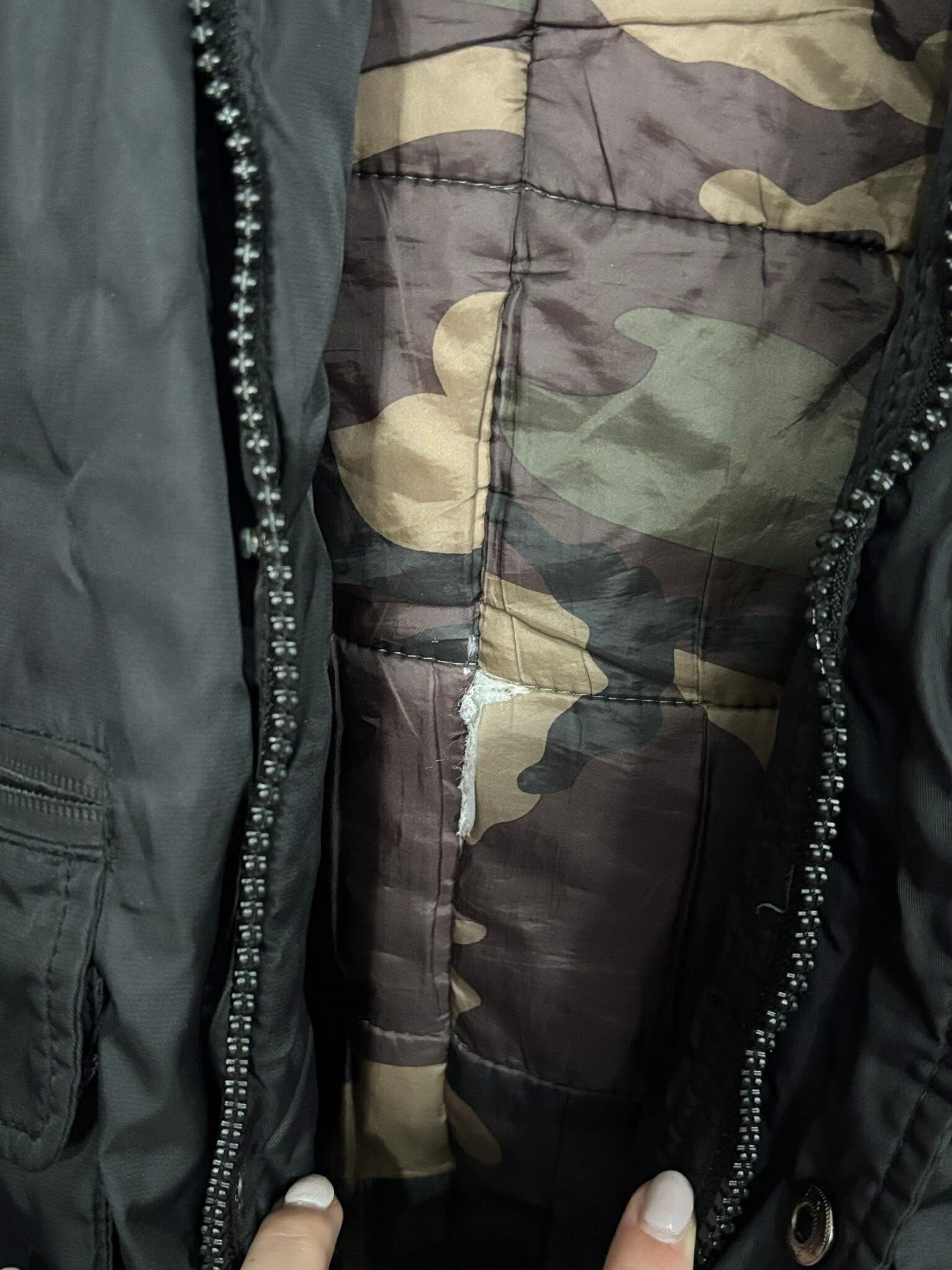 petit accros a l'interieur du manteau